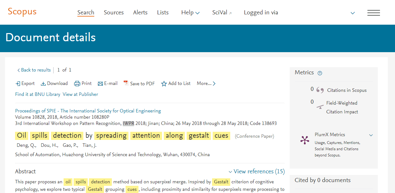IWPR 2016 丨 SPIE Proceeding Cover 丨 Ei Compendex 丨 Scopus