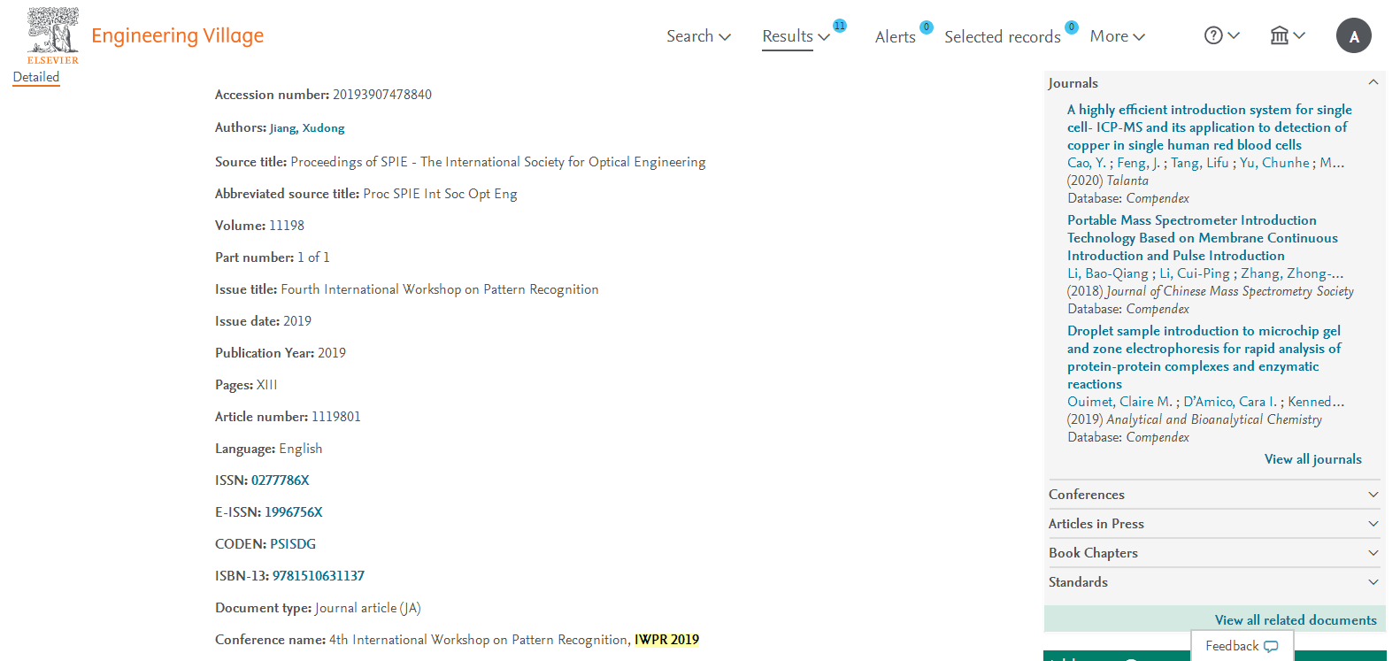 IWPR 2019 丨 SPIE Proceeding Cover 丨 Ei Compendex 丨 Scopus